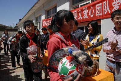 國資委直屬機關郭明義愛心團隊公益活動 穿過重重煙霧,沿著唯一一條通向學校的泥濘公路來到三河市段甲嶺鎮(zhèn)蔣福山小學。這里交通閉塞,環(huán)境污染嚴重,經濟落后,但是這些都沒有使這里的孩子們放棄求學的欲望,反而激發(fā)起了大家更強烈的學習熱情和改變家鄉(xiāng)的愿望??吹?50多個孩子稚嫩、純樸、可愛的笑臉,志愿者們心情非常激動,紛紛把帶來的學習用品和體育用品送到孩子們手中。隨后,大家來到課堂上,為孩子們傳授科學文化知識,回答孩子們提出的問題,鼓勵他們熱愛學習,要努力學習科學文化知識,做一個勇敢、堅強、有益于社會的人。志愿者們在表演了自編的節(jié)目后,又來到操場上,和孩子們共同做游戲,并植下了愛心樹,祝愿孩子們能在社會各界愛心人士的幫助下和關心下茁壯成長,將來成為社會主義合格的建設者和接班人。